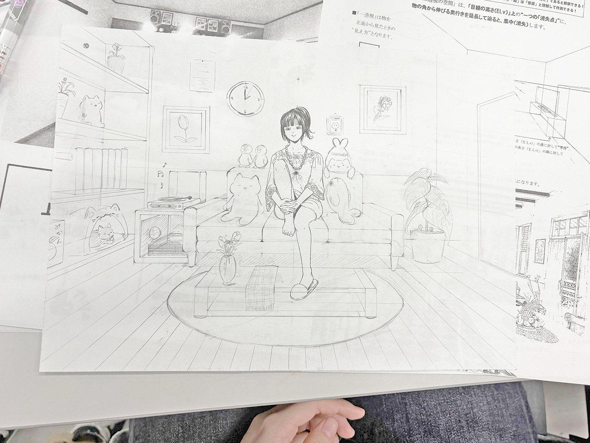 コミックイラストコースではアナログとデジタルの両方を授業で取り組んでいます😊