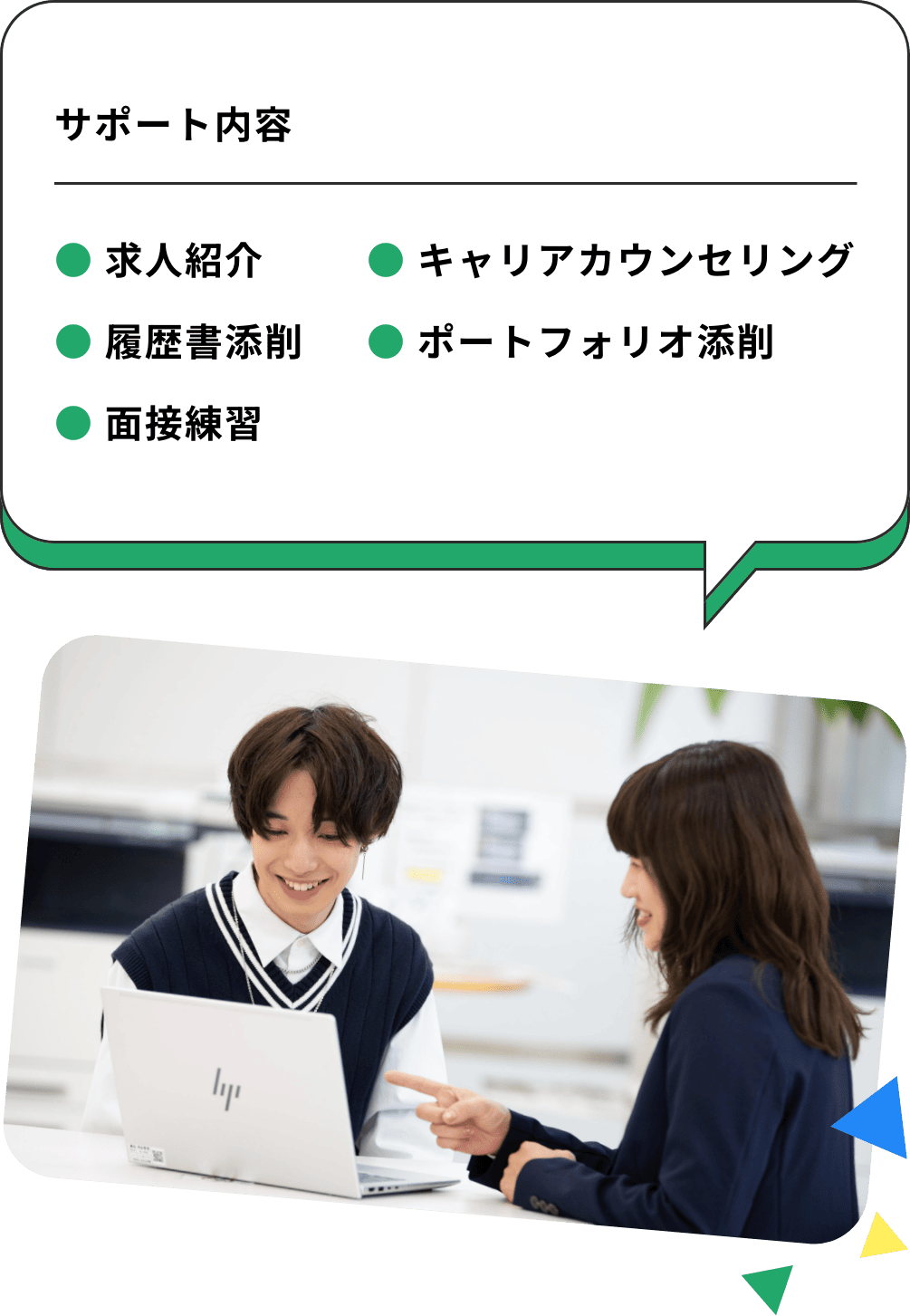 通信教育では不安に思われがちな就職サポートも、卒業した専門学校の教職員が引き続き手厚くサポートします。