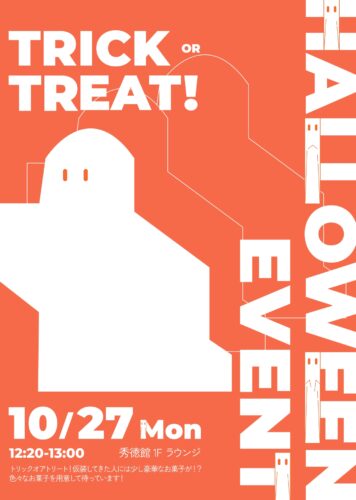 10月27日(月)に秀徳館1階ラウンジにてハロウィンイベントを開催します!!