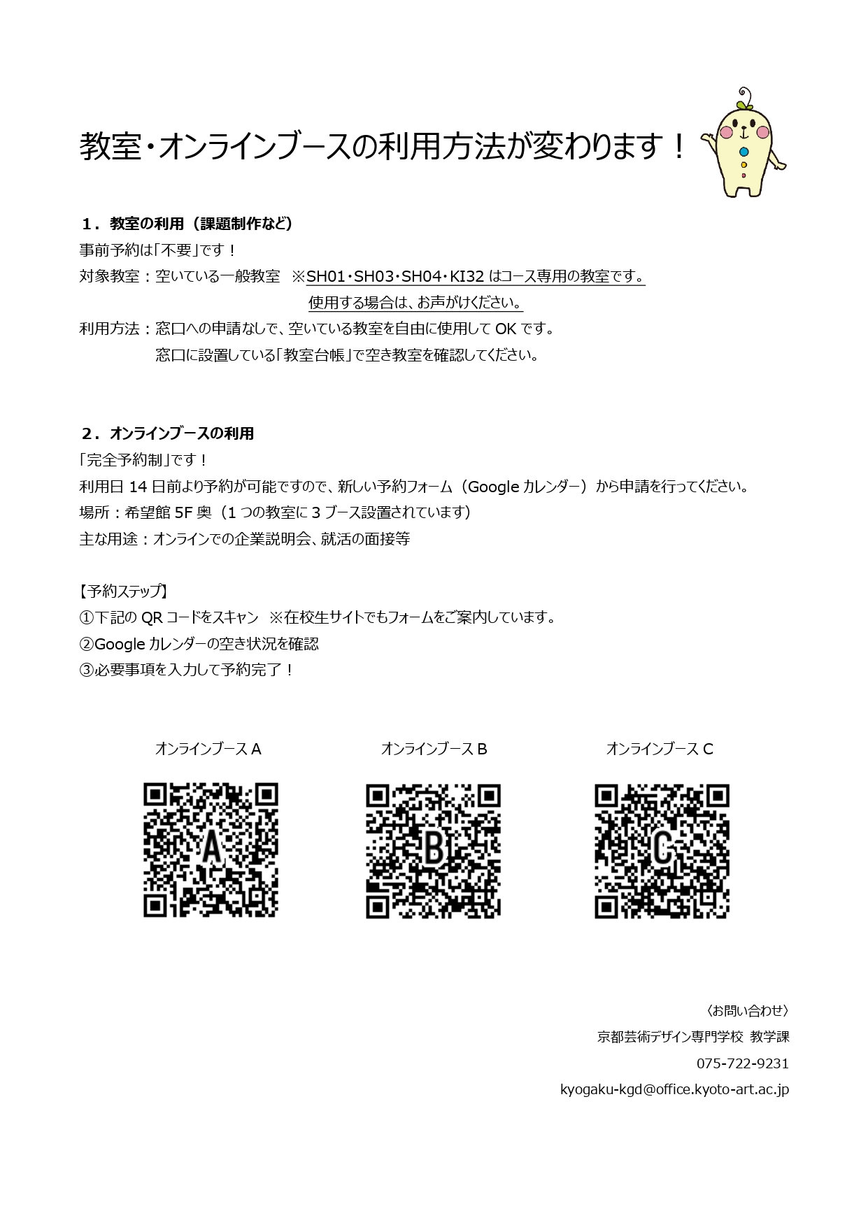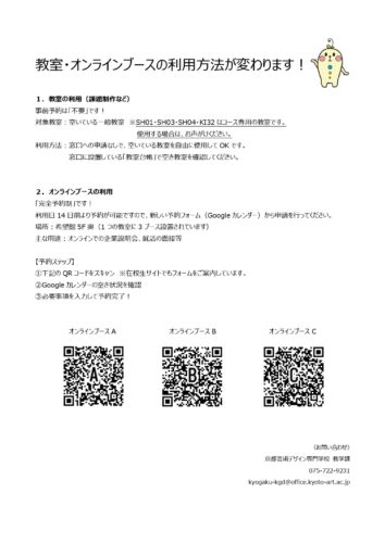 4/20(月)より、教室・オンラインブースの利用方法が変わります。